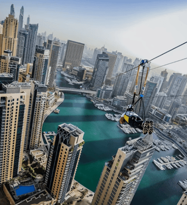 Dünyanın en uzun şehir içi zipline'ı XLine Dubai Marina'da adrenalinin damarlarınızda dolaştığını hissedin.