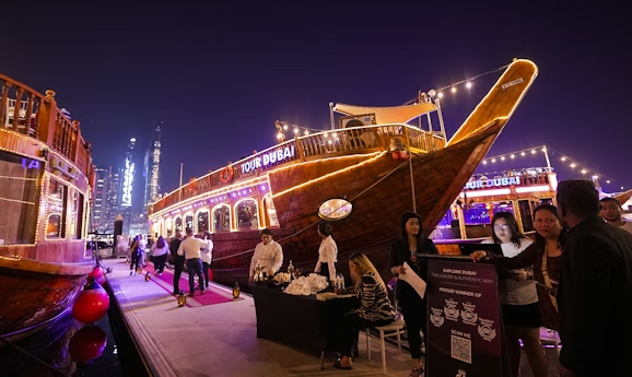 Kamera hazır! Dubai Marina'nın ışıltılı silüeti, Ain Dubai'nin yükselen tekerleği ve JBR'nin şık yüksek binaları kartpostalları aratmayan kareler oluşturuyor. Canlı Tanoura dansçıları göz kamaştırıcı LED aydınlatma kostümler içinde dönerken dalgaların ritmine kapılın.